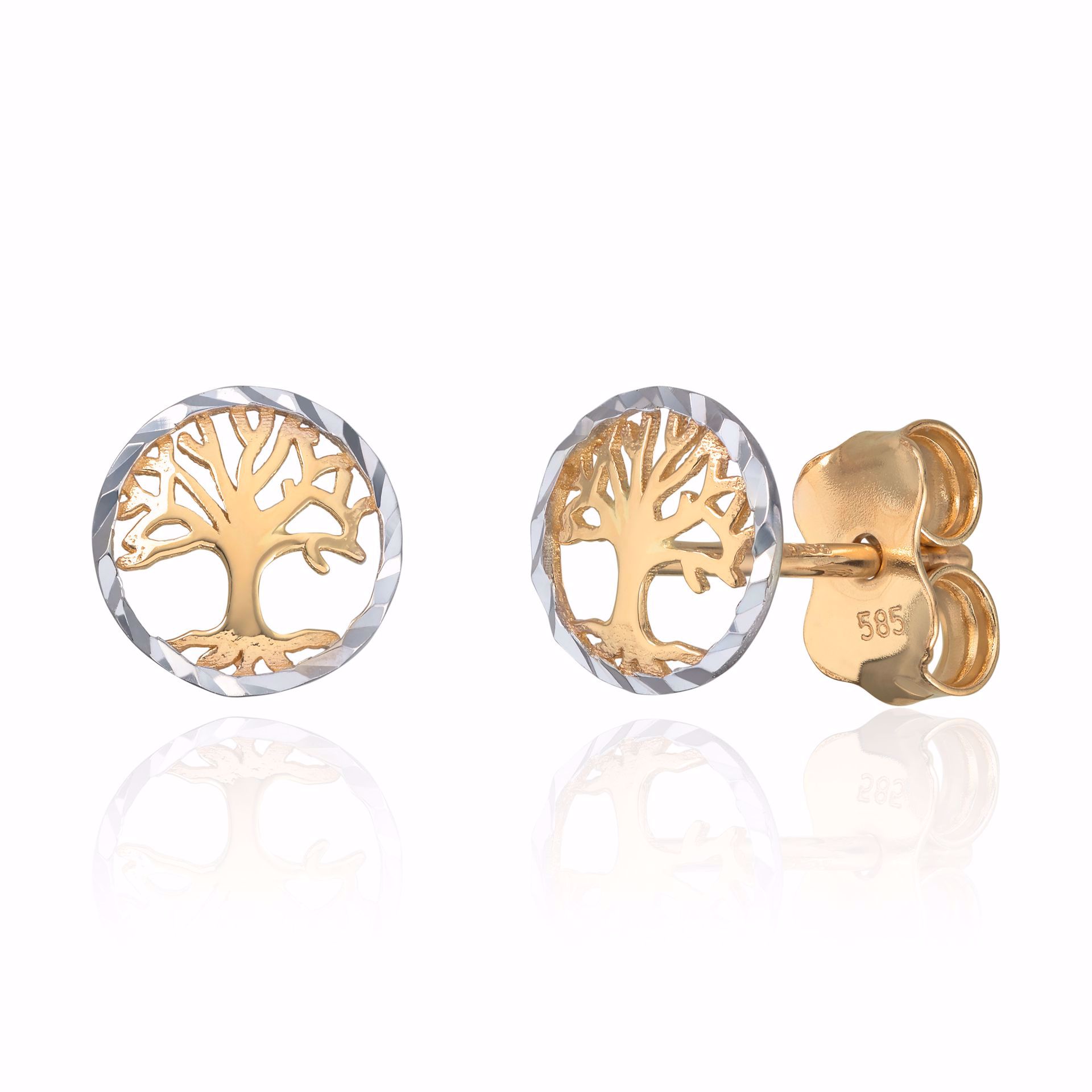 Øredobber Livets Tre i 585 gult og hvitt gull