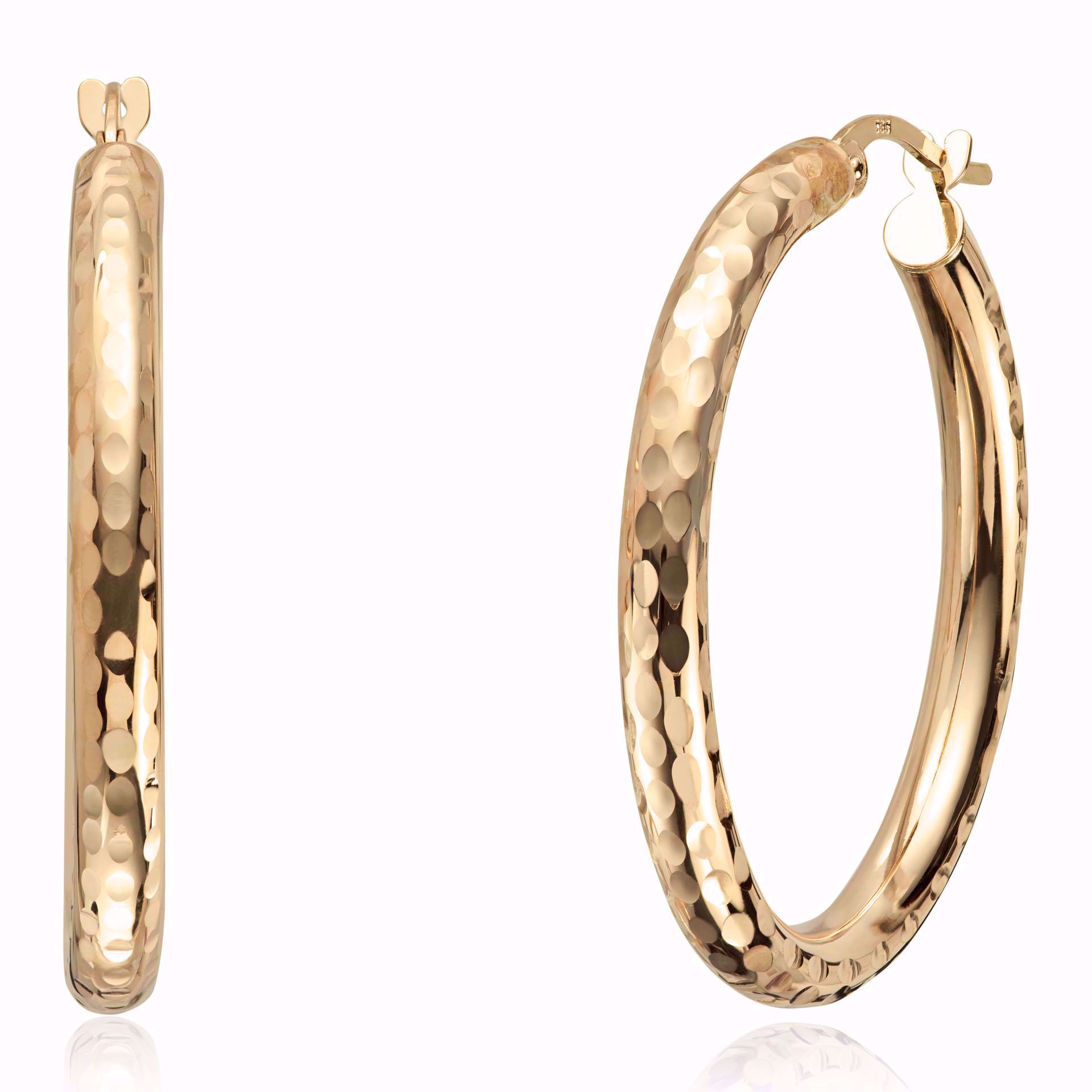 Gulløreringer passer virkelig til enhver anledning! Disse har en vakker og delikat hamret overflate. De hamrede detaljene skaper et flott spill, og setter virkelig prikker over i'en. Like fine til jeans som til penkjolen - de skaper en eksklusiv og elegant look. Bredde: 3,1 mm. Høyde: 30 mm. Materiale: 585 gult gull.