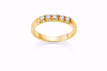 Alliansering i 585 gult gull med diamanter 5x0,10 ct. WSI