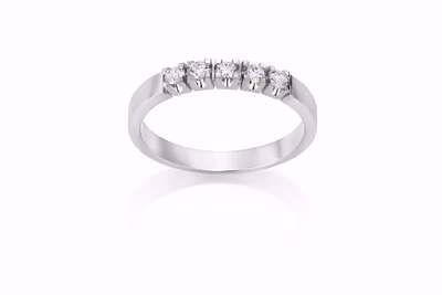 Alliansering i 585 hvitt gull med diamanter 5x0.03 ct. WSI