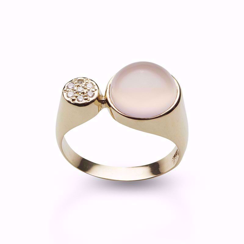 Arven Bon Bon Avec Diamantring med Rosenkvarts - 585 gult gull 0,07ct. WSI