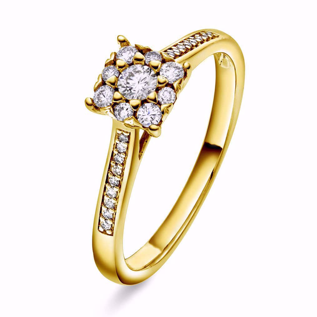 Diamantring, rosett - 585 gult gull 0,26 ct. WP