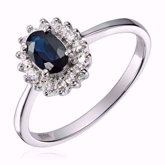 Diamantring, rosett - 585 hvitt gull med safir og diamanter 0,16 carat WSI