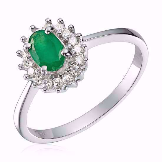 Diamantring, rosett - 585 hvitt gull med smaragd og diamanter 0,16 ct. WSI