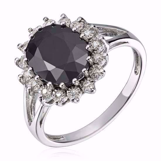 Diamantring, rosett med sort safir - 585 hvitt gull 0,08 ct. WSI
