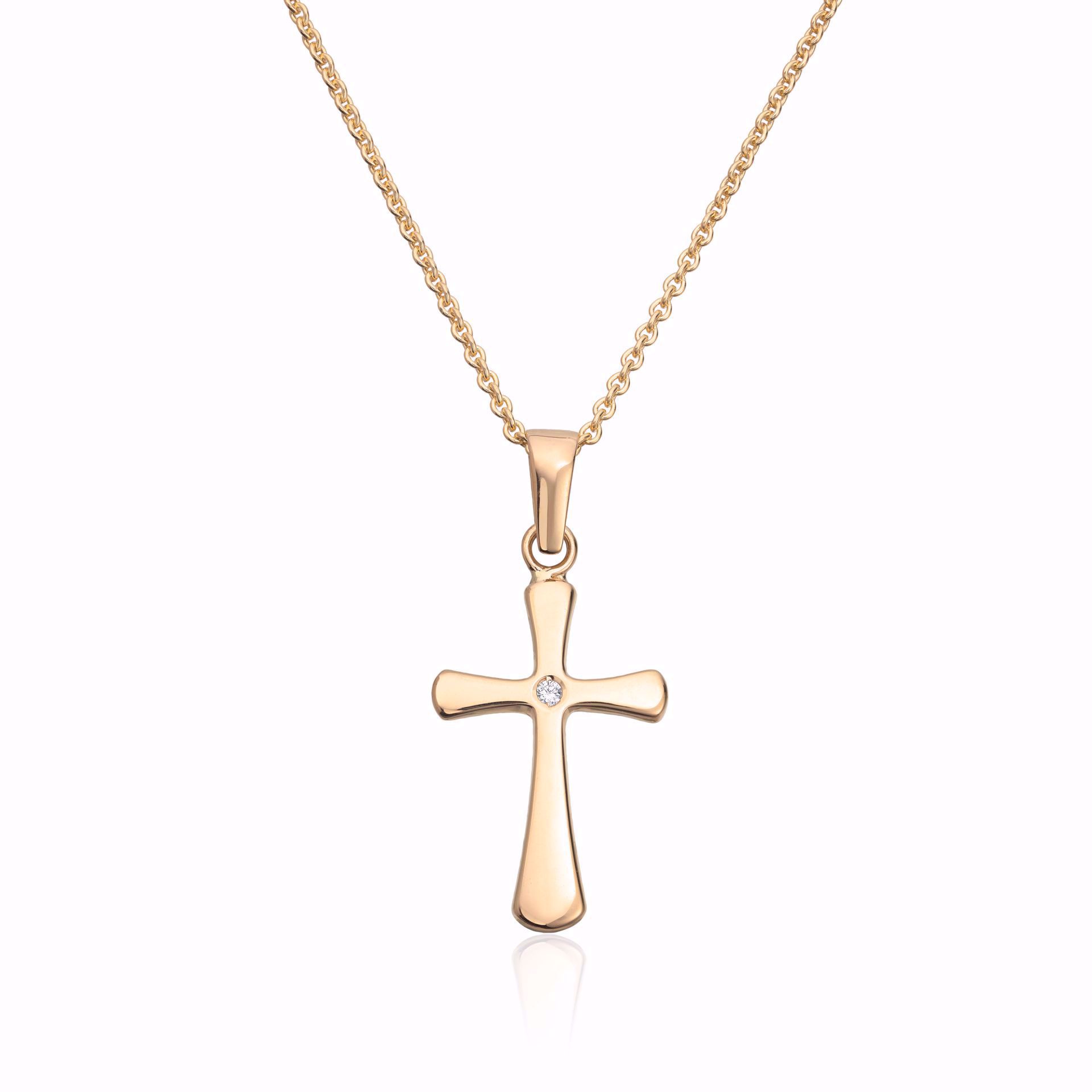 Gullanheng, kors med diamant - 585 gult gull 0,01 ct.