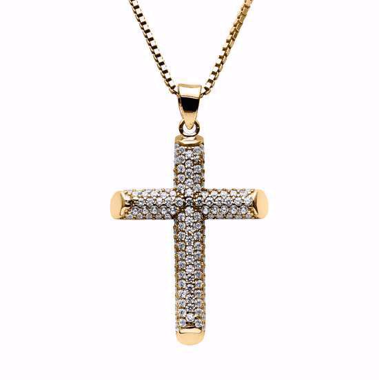 Dette gullanhenget formet som et kors, overstrødd med glitrende zirkonia, er et smykke som kombinerer tradisjon, tro og tidløs eleganse. Korset er et av de mest kjente symbolene i verden – et uttrykk for tro, håp, kjærlighet og beskyttelse. For mange er det et personlig og nært symbol, og et smykke som bæres med stolthet og mening. Smykket skaper et eksklusivt uttrykk som er både moderne og klassisk på samme tid. Anhengets høyde: 27,3 mm. Bredde 19,5 mm. Kjede selges separat. Materialer: 585 gult gull og zirkonia.