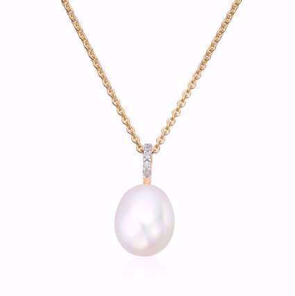 Vakkert gullanheng i 14 karat gult gull med ferskvannsperle