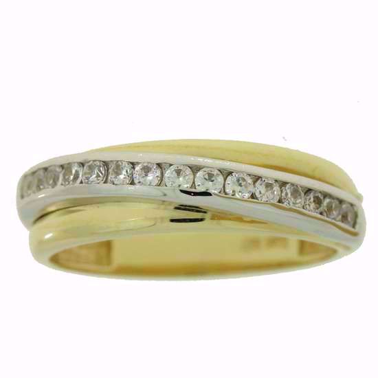 Gullring, tofarget - 585 gult og hvitt gull med zirkonia