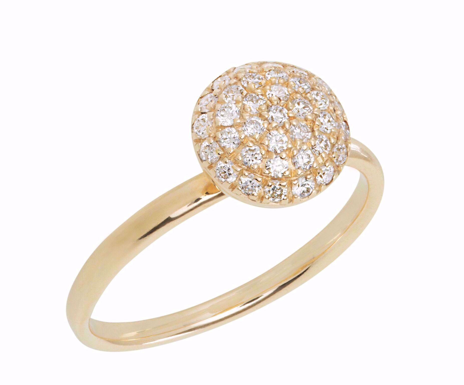 Warna Diamantring fra Heiring har et virkelig eksklusivt og lekkert design. Halvkulen på toppen av ringen er fattet med glitrende diamanter, og den blir virkelig et iøynefallende smykke til hånden. Bruk ringen alene, eller kombiner den med flere for et personlig uttrykk. Et utmerket valg som gave når livets store begivenheter skal markeres. Materialer: 585 gult gull og diamanter. Totalvekt av diamanter: 0,35 ct. Diamantkvalitet: WVS. Diamantslip: Brilliant. Lagerført størrelse: 54.