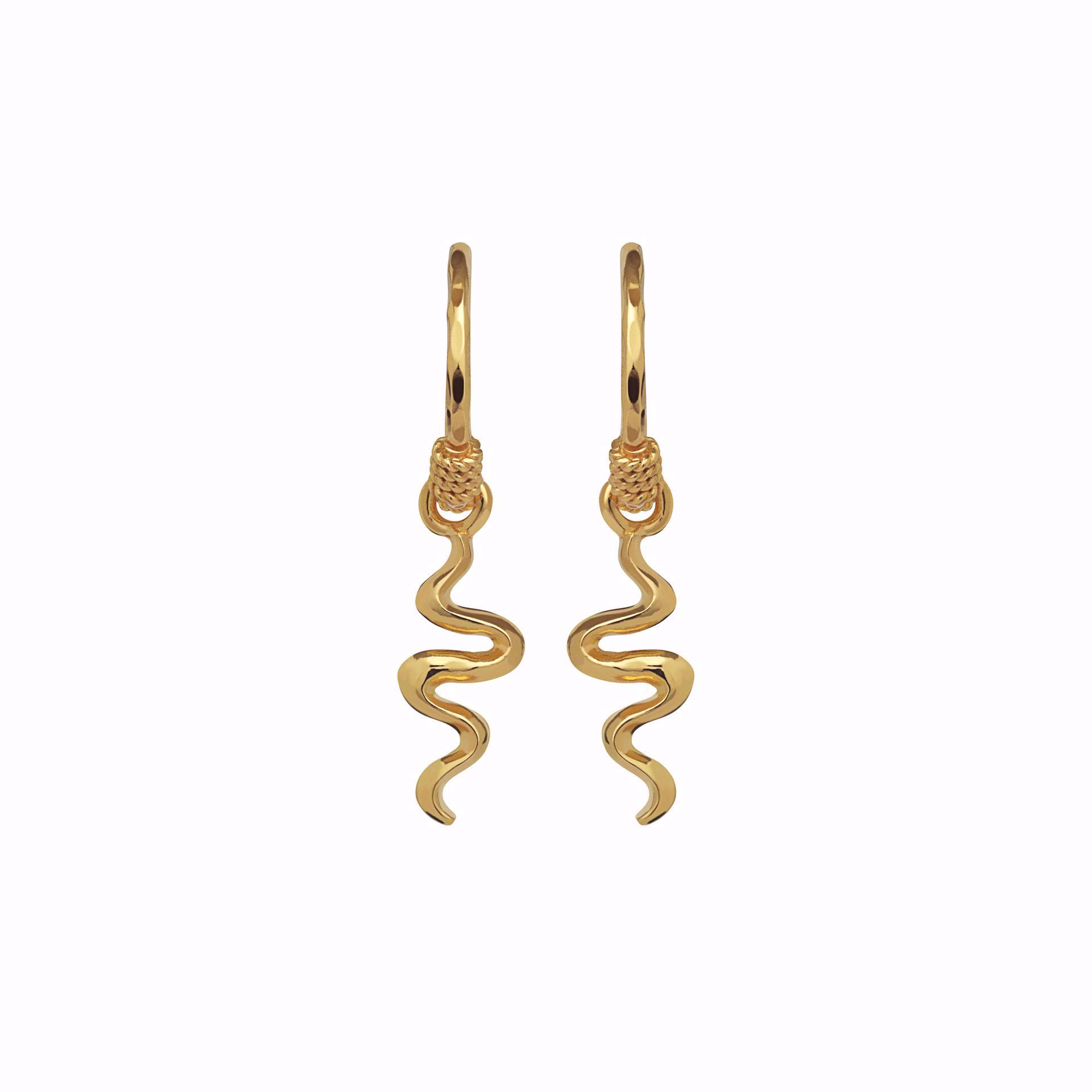 Liten creol med hamret tekstur og et lite slange-vedheng. En bestselgende klassiker fra Maanesten som funker til enhver anledning. Materiale: Resirkulert 925 sterlingsølv belagt med 18K gull. Lengde: 22,3 mm.