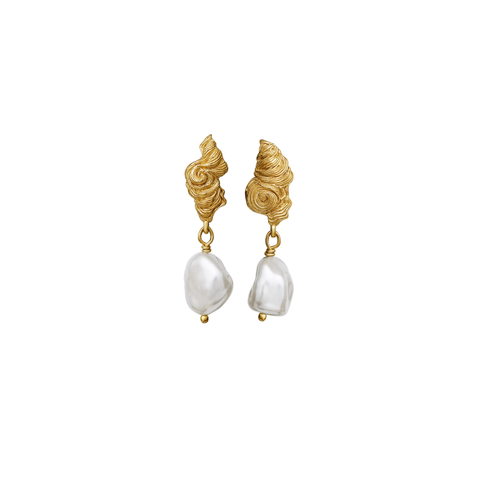 Formet som en konkylie, med en skinnende barokkperle.