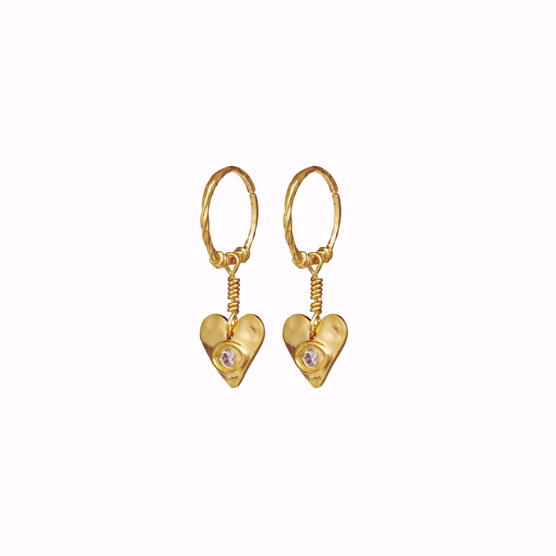 ørering med hjerteanheng og en liten zirkonia i senter.