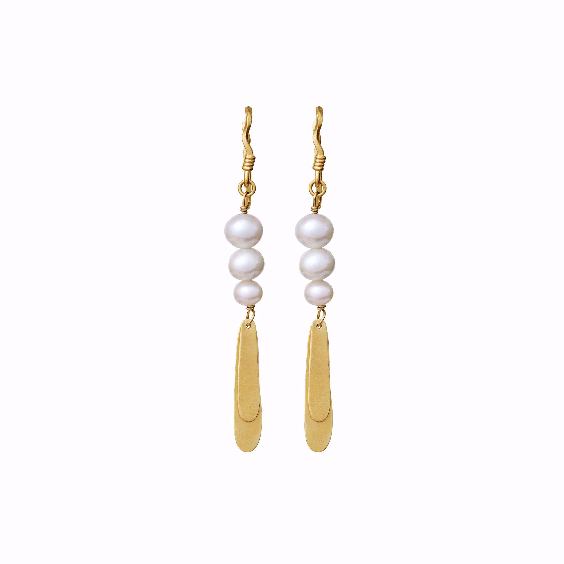 Nydelig perleørepdobb i resirkulert, gullforgylt sølv fra danske