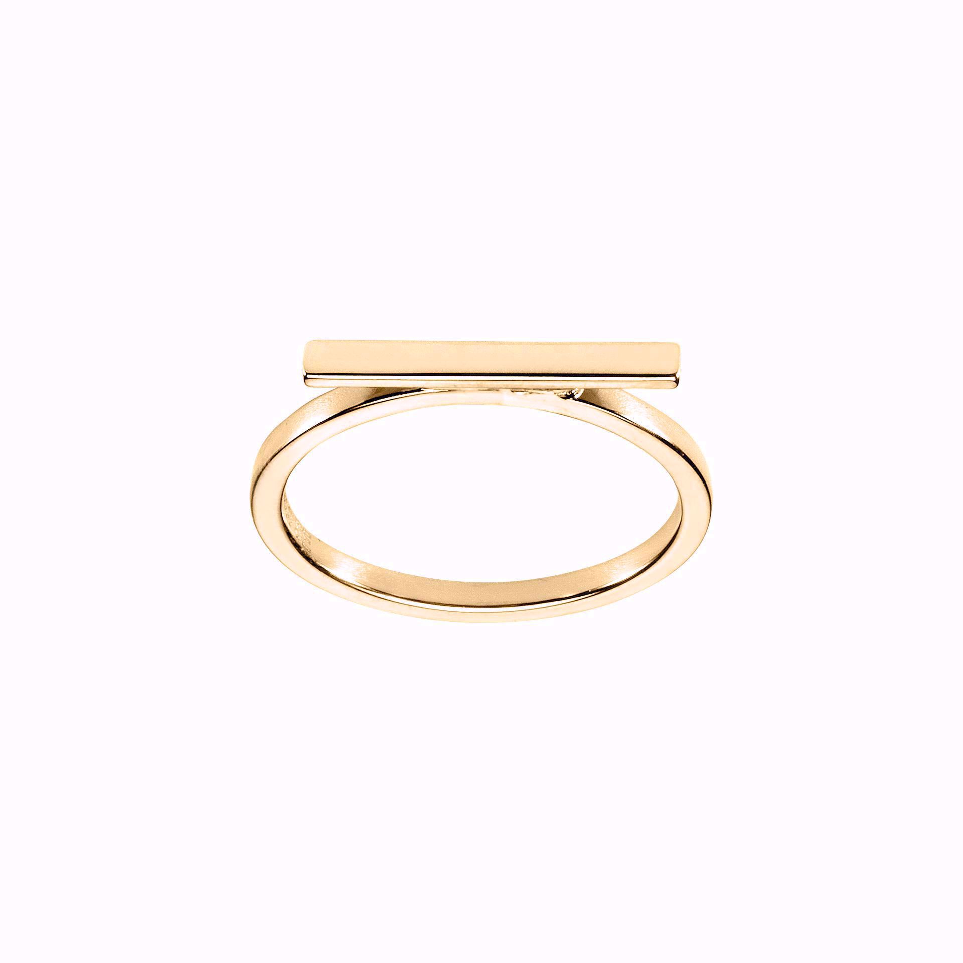 Denne ringen er lekker og delikat med morsomme detaljer. På toppen er ringen prydet med et smalt, rett element som skaper et stilfullt og stramt uttrykk. Ringen er flott alene for en enkel look. Ønsker du et mer personlig uttrykk kan du gjerne bruke ringen sammen med flere av dine andre ringer. Ringens bredde: 2,4 mm. Materiale: 585 gult gull.