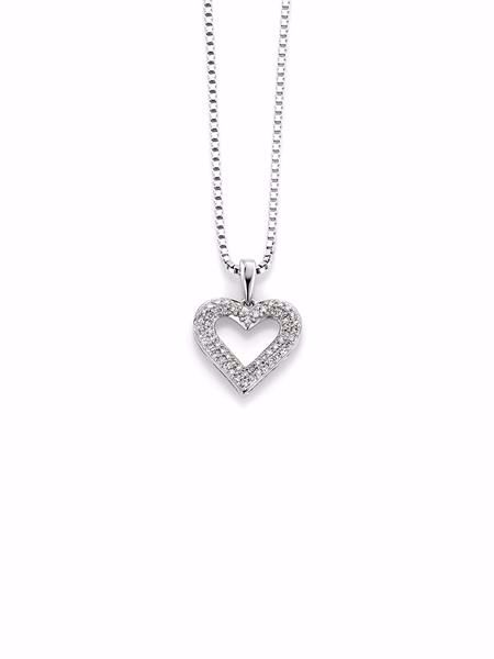 Vakkert anheng i 14 karat hvitt gull med diamanter, 0,15 carat i WSI kvalitet. Leveres med kjede i sølv på 42 cm.