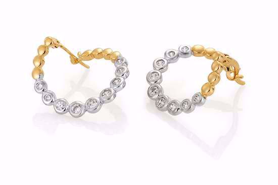Topp antrekket ditt med disse lekre, tofargede øreringene i gult og hvitt gull, prydet med glitrende zirkonia. Øredobben har et vridd design, og slynger seg fint rundt øreflippen. Disse kan du bruke når du vil tilføre litt glam til hverdagens jeans, eller du kan bruke dem som eksklusiv pynt til et pent festantrekk. Diameter: 17 mm. Materialer: 585 gult og hvitt gull, zirkonia.